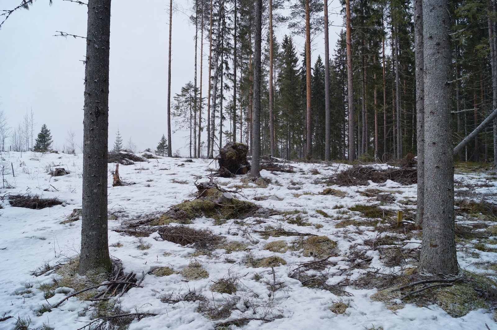 Ceturtajā dienā mums bija palicis darbiņš par vaskulārajiem augiem, sūnām un ķērpjiem kopā ar Niinu Onttonenu. Mūsu parauglaukums pirmajam eksperimentam atradās turpat pie Mekrijärvi krasta, vajadzēja izveidot 10x10 metrus lielu kvadrātu, kurā jāuzskaita visas koku, krūmu un ķērpju sugas. Lielā parauglaukuma stūros bija jāuztaisa četrus mazus 1x1 metru lielus parauglaukumus, kuros jāievāc visas sūnas un vaskulārie augi (katram cilvēkam tika sava augu grupa, es izvēlējos sūnas).